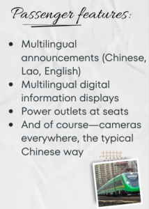 Announcements were made in Chinese, Lao, and English. A rolling digital display showed speed, next stops, and gentle reminders in all three languages. Simple, functional. Beyond Kunming, spoken English was virtually nonexistent.